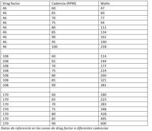 Cinético, tres pruebas se realizaron a potencias fijas de 200, 250 y 300 W, todas ellas a una cadencia preestablecida de 90 rpm, propia del pedaleo en llano, y para evitar la influencia de la potencia y la cadencia en la eficiencia mecánica de pedaleo.