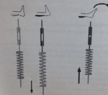 Funcionamiento del sistema tendón- músculo para el tríceps en el curso de una acción pliométrica (drop jump). La elongación corre a cargo únicamente del tendón (muelle). COMETTI. G. 2007 (2)