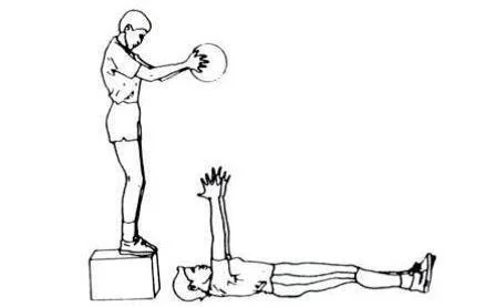 Ejercicio 15: por parejas; pase de pecho en decúbito supino.