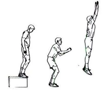 Ejercicio 13: caída + salto (drop jump) sobre plataforma ligeramente elevada