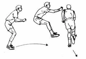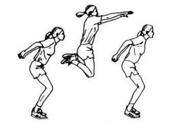 Ejercicio 6: salto vertical a la pata coja; en decúbito lateral con una separación de los pies a la anchura de los hombros. Elevamos una pierna y la balanceamos hacia el lado al que vamos a saltar, cruzándola por delante de la pierna de apoyo, debemos saltar la máxima distancia posible, aterrizando con apoyo de ambos pies.