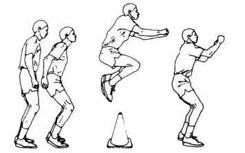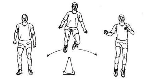 Ejercicio 8: salto lateral sobre un obstáculo. Repetimos el salto inmediatamente tras impacto.