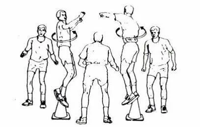 Ejercicio 5: salto con los pies juntos sobre un obstáculo. No debemos desviar las rodillas hacia los lados ni separarlas. El cuerpo debe permanecer lo más vertical posible.