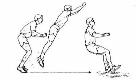 Ejercicio 4: salto horizontal desde parado, realizando balanceo de brazos y contramovimiento con las piernas. Intentamos saltar lo más lejos posible.