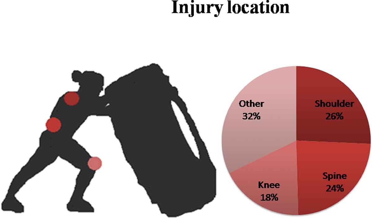 Sin embargo, las tasas de lesiones fueron superiores a culturismo (0,2-1) y mucho más bajo en comparación con Strongman (4,5-6,1) (5).