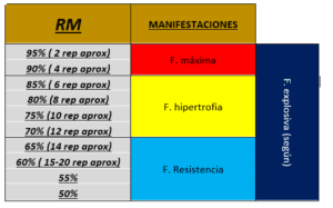 Fuerza- velocidad: se relaciona con movimientos en lo que grandes cargas se aceleran con una velocidad moderada (Ej: dos tiempos halterofilia)