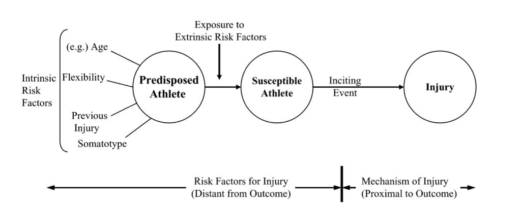 Meeuwisse, W. H., Tyreman, H., Hagel, B., & Emery, C. (2007). A Dynamic Model of Etiology in Sport Injury: The Recursive Nature of Risk and Causation. Clinical Journal of Sport Medicine, 17(3), 215-219.
