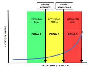 Dependiendo del modelo de entrenamiento, la cuantificación de la carga a través de los umbrales antes mencionados nos permite registrar el volumen y la intensidad total del trabajo realizado en relación con los porcentajes de entrenamiento que un sujeto desarrolla en cada una de las tres zonas o fases.