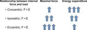 Según algunos artículos de revisión (García-López, 2008; de Souza y de Paz, 2012) se ha demostrado que, para diferentes formas de ejercicio, durante las acciones excéntricas hay mayor producción de fuerza en comparación con las concéntricas. Las activaciones excéntricas generan mayores niveles de fuerza que cualquier otro tipo de activación muscular, facilitando el desarrollo de la fuerza: requieren un menor coste metabólico (con igual o mayor activación muscular): y producen mayor daño estructural.